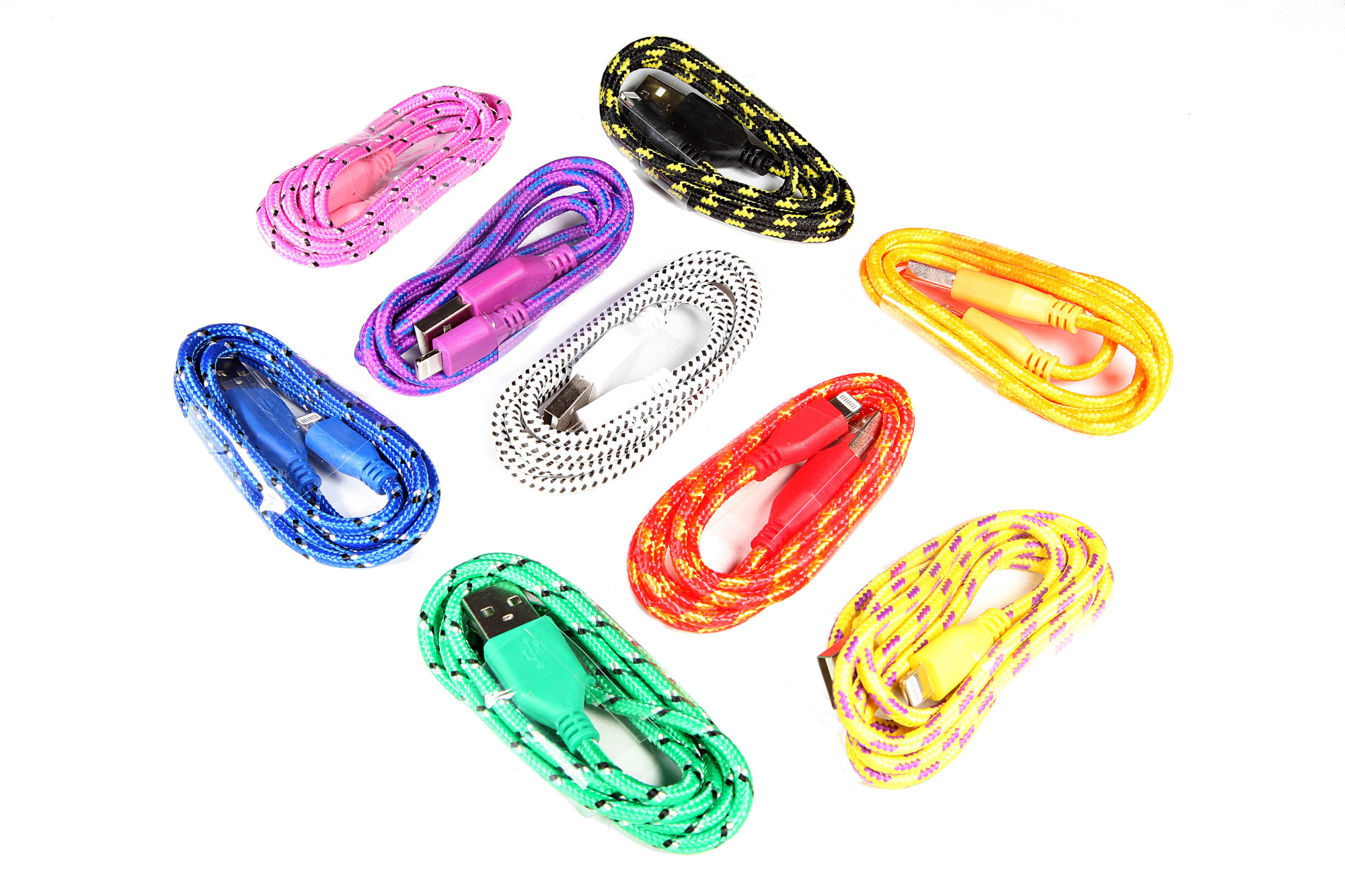 Съемные аксессуары к айфонам, хотя и используются менее интенсивно, чем сам гаджет, но подвержены не менее активному износу, порой именно по этой причине. Владельцы отосятся к ним менее бережно. Поэтому соединительный USB-кабель запросто может оказаться под ногами, в ящике письменного стола или на дне сумки. Любое из этих мест – источник повышенного травматизма. Производители учитывают особенности использования таких аксессуаров и позаботились об увеличении их стойкости к внешним воздействиям. Один из способов упрочнения – текстильная оплетка, предохраняющая виниловую оболочку кабеля от повреждений. Заодно используется декоративный эффект – оплетка красива и приятна на ощупь.